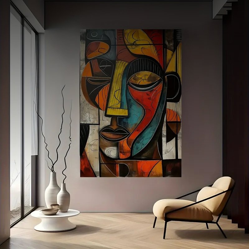 Fragmented Soul is an original abstract painting that explores the harmony between geometry and emotion. Bold strokes of red, ochre, teal, and black intersect to form a fragmented yet expressive human face. The artist balances structure and spontaneity—each curve and contour suggesting both strength and vulnerability. Through layered textures and contrasting tones, the piece evokes introspection, revealing the complexity and rhythm within the human spirit.